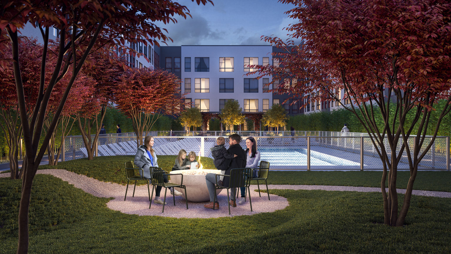 Arterial was commissioned as Landscape Architect for the streetscape surrounding the development and the private courtyard amenity space. The pedestrian experience around the building is particularly important for creating a safe and enjoyable connection to the light rail for residents of the neighborhood. Sculptural benches, ornamental trees and specialty paving help create a flexible public space that is used for socializing, gathering and programming. The private courtyard space features a pool with sunning deck, lawn space with intimate seating and a hardscaped plaza with a variety of seating spaces, barbecues and game tables.